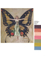從1900年巴黎萬國博覽會到千禧年倒數,橫跨百年的色彩史繽紛地展現在我們眼前:品酒色唇膏、塵粉紅色連身短裙召喚著爵士時代(二○年代)新女性的墮落頹廢,檸檬糖、淡彩綠松石餐具和廚具暗示著五○年代的樂觀天真,而「加州旅館」黃昏的羞紅和海軍藍在七○年代追逐著天堂……