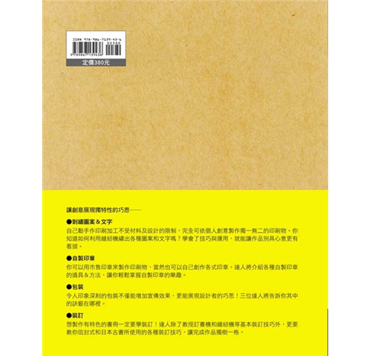 自己動手作印刷加工不受材料及設計的限制,完全可依個人創意製作獨一無二的印刷物。你知道如何利用縫紉機繡出各種圖案和文字嗎?學會了技巧與運用,就能讓作品別具心意更有看頭。