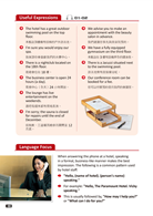 本書依據國人在職場上的需求,針對常見情境進行編撰。全書共3章27單元,並特別收錄外交部公佈之『國際禮儀』章節,以加強國人對國際禮儀的認識。每章節都是餐旅必備主題:『描述飯店設施』、『飯店預約』、『報到手續』、『飯店職業』、『客房』、『飯店服務』、『飯店內設施位置』、『電話用語』、『疑問與抱怨』、『飯店提供的旅遊服務』、『活動安排』、『退房手續』、『餐廳職業』、『預約訂位』、『迎接與帶位就座』、『飲品』、『早餐』、『開胃菜及甜點』、『點餐』、『台式∕中式菜餚』、『歐式菜餚』、『用餐時間』、『抱怨』、『結帳』、『前往目的地』、『入境』、『交通工具』。