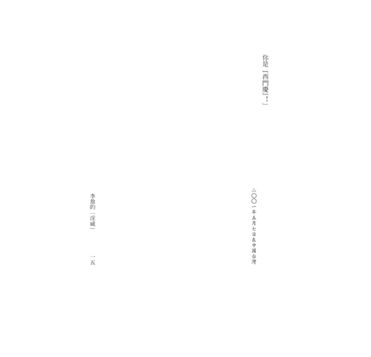 去年我跟「聯合報」社長張作錦吃飯,他半真半假的說:「李敖兄,多少年來,我們一直以為你是『匪諜』,現在承認我們錯了,—你不是『匪諜』,你根本就是『匪』!」我聽了大笑。如今,看了真正的匪夷所思的匪貨,我想張作錦會改口了:「李敖兄,我們一直以為你是破除迷信的『西門豹』,現在承認我們錯了,—你不是『西門豹』,君子豹變,原來你是『西門慶』!」