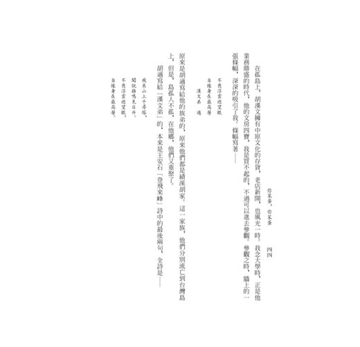 漢文弟 適原來是胡適寫給他的族弟的,原來他們都是績溪胡家。這一家族,他們分別流亡到台灣島上,但是,島孤人不孤,在他鄉,他們又重聚了。