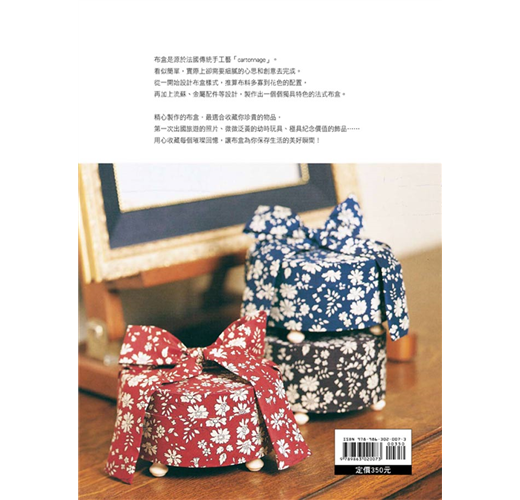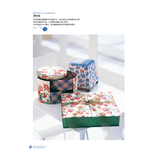 這次試著將焦點放在cartonnage作品中的「布盒」,集結整理成冊。書中每一項作品在改變了不同顏色、風格與觸感的布料形狀後所呈現的表情,再細微感。不限於新布,以前穿的洋裝及和服、用舊的包包及窗簾、充滿孩子們回憶的衣服等等都可以再利用,賦予嶄新風貌,繼續述說著動人的故事。