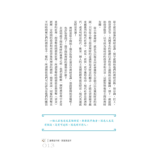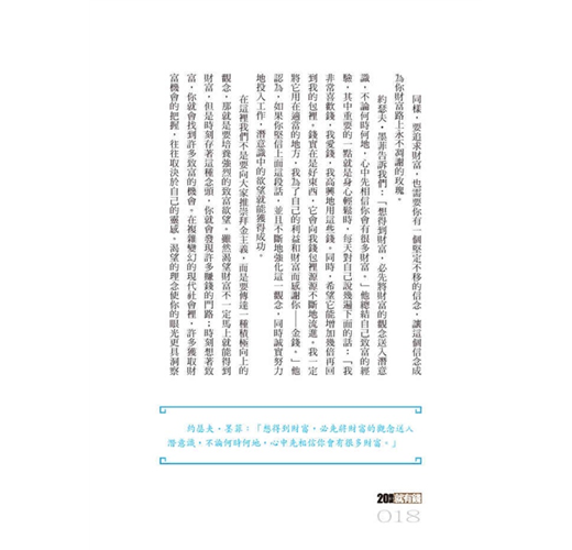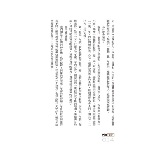 ■ 賺錢難,是因為你不知道如何把握賺錢的時機,更不懂得如何好好地運用!記住!20幾歲該賺的不只是薪水!而是你賺的錢能讓你過得多好。