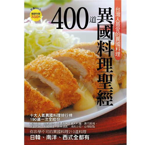 豬排炸雞、排隊鍋物、香濃焗烤、義大利麵、壽司飯捲、人氣煎餅、各國咖哩、美味速食、清爽沙拉、必學甜點,全部190道最受歡迎的異國料理全收錄。