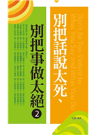 別把話說太死、別把事做太絕,古訓所云:知人不必言盡,留三分餘地與人,留些口德與己;責人不必苛盡,留三分餘地與人,留些肚量與己;才能不必傲盡,留三分餘地與人,留些讓讓與己;鋒芒不必露盡,留三分餘地與人,留些寬道與己;得寵不必恃盡,留三分餘地與人,留些後路與己;氣勢不必倚盡,留三分餘地與人,留些厚道與己;富貴不必享盡,留三分餘地與人,留些福澤與己;凡事不可做盡,留三分餘地與人,留些餘德與己。