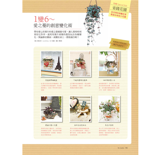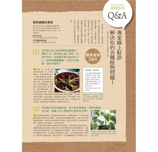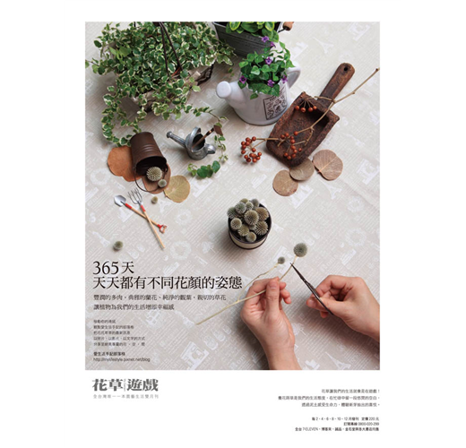 全台灣唯一一本園藝相關雙月刊,將現代人叢居水泥森林而渴望綠意的心情,化作實際的行動;每期介紹適合各種不同空間的植物、栽種方式,更有多位達人現身教導大家解決有關植物的大小事。花草遊戲官方部落格mygardenstyle.pixnet.net/blog