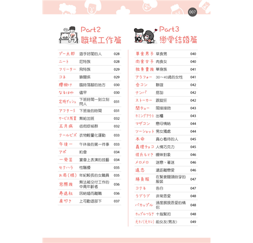 分成11個部分,歸納出目前在日本仍常被提及的流行用語。