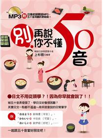 加料附贈必講、必聽到的常用句!《別再說你不懂50音!》依生活上和職場上會遇到的狀況,設計9大類情境對話,附上輔助的羅馬拼音,讓你即使只有50音的程度,也能愉快地開口說日文,聽見對方的回應,也不再像迷失的小綿羊,一頭霧水超尷尬!