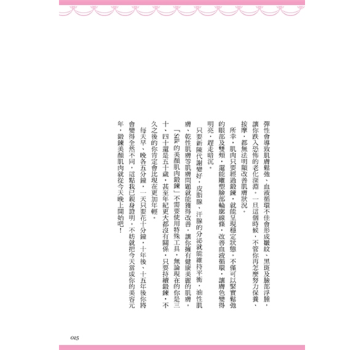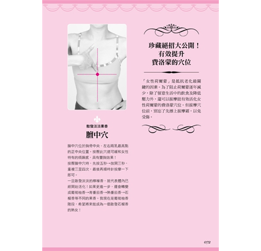 ˙結合東方穴位理論及淋巴按摩原理,指導女性雕塑完美比例,24小時散發如同戀愛般的費洛蒙,由內而外,持續美麗。