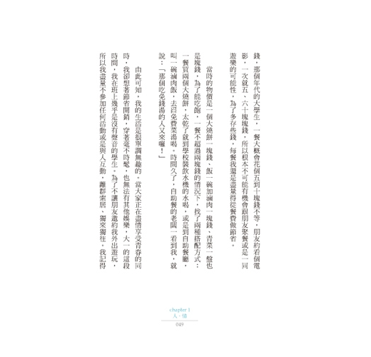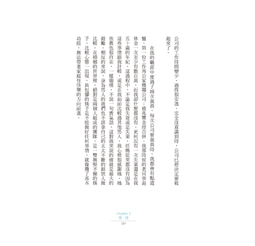 而「抗壓」哪是件容易的事情呢,你要一個大學剛畢業的孩子承受千斤重的壓力,是非常困難的,對我來說可能就相對輕鬆。也正因為年輕時期的我,承受過各式各樣的考驗,不論是家庭、工作,讓我在遇到突發狀況時,能一肩挑起千百斤的擔子,還能繼續正常生活。本次書中細數我從小的家庭所帶給我強大的責任感,與我父親身教下的正直與規矩,感謝父親傳承給我忠厚待人,謙遜處世的個性。也因為我不與人爭的態度,不知不覺中累積了許多人脈,在我內心最艱難的一段中年失業中,這些過往的同事竟然拉了我一把,讓我回到社會上。