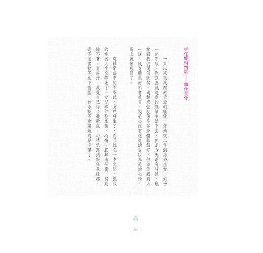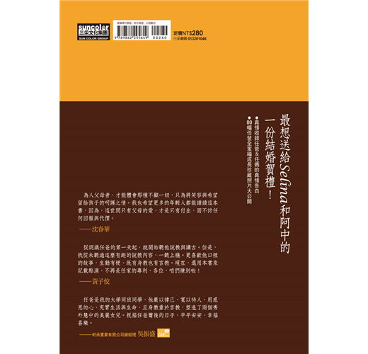 為人父母者,才能體會那種不顧一切,只為將笑容與希望留給孩子的呵護之情。我也希望更多的年輕人都能讀讀這本書,因為,這世間只有父母的愛,才是只有付出,而不計任何回報與代價。——沈春華
