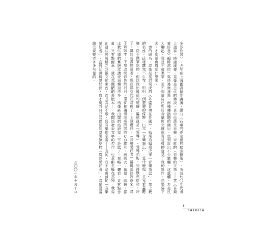 作者歐遊彼時,感受所在城市「音樂即空氣」的氛圍,字裡行間有親臨音樂現場的震撼與造訪大師故居油然開啟「人猶在」的想像;憶往「音響」啟蒙耳朵的「受洗日」,分享「非發燒友」的發燒收藏,以畫家立場答「音樂愛好」,演奏出「耳朵」與「眼睛」相互激盪的音樂哲學。全書配以精彩圖片饗人眼目,堪稱他諸本文集中最為風雅的製作。