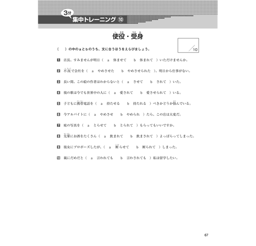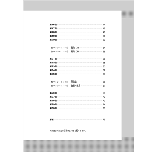 ● 100題重點練習題:依主題分類,鎖定助詞、句尾表現、副詞、接續語、使役、被動等必考項目,幫助考生補強弱點,厚植實力。