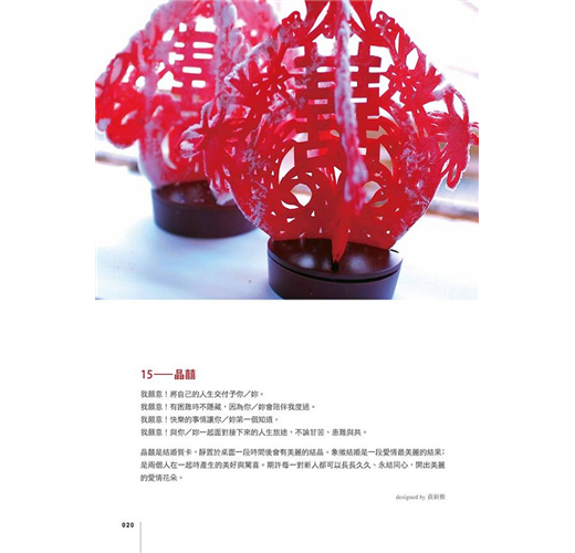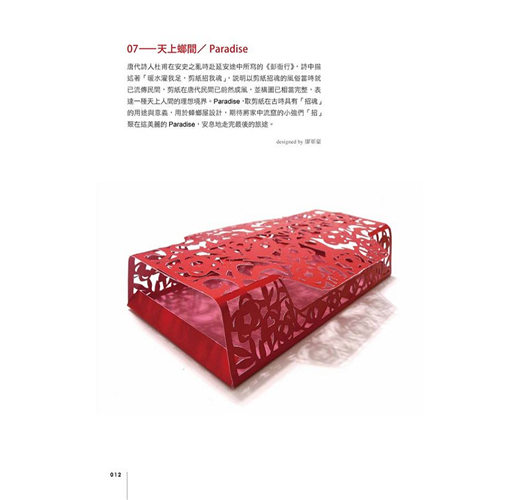 我熱愛創作、設計與瞭解東方傳統文化。文化的產生與生活息息相關,雖然台灣本島並未擁有自身發展的剪紙文化,是因時空背景隨移民傳承而逐漸深根,但在這塊多元文化融合的土地上,相信早已發展出屬於自己特色的現代剪紙。籌畫本書並未有什麼沉重的使命感,只是希望藉由分享,讓更多人體會剪紙創作的樂趣,並試著喚醒人們對剪紙的記憶。