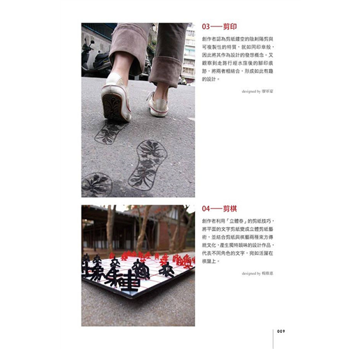 國內知名剪紙團體「前刀糸氏」,由華碩工程師、電影劇作家、首飾設計師、藝術所博士生、家庭主婦……一群20~30多歲的年輕人所組成,他們在相互激盪之下,讓剪紙這項傳統技藝有了嶄新的姿態,再注入愛與創意,剪、刻、撕、染出許多溫馨有意義的故事佳作,更在你意想不到的食衣住行之間,巧妙呈現出讓人驚豔的平面、立體等多元豐富的剪紙生活美學。