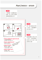書中沒有讓人看了想要打瞌睡的多餘講解,直接藉由同一句型「照樣造句」的方式,搭配看圖練習,自然而然了解這種句型的使用時機與方式,遇到類似的情境馬上就能聯想應用,脫口說出想要表達的意思。