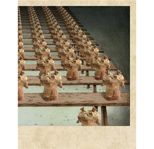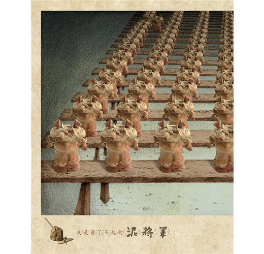 書中同時運用立體的泥塑和平面的繪畫來呈現,使畫面看起更為豐富。兩個眼睛瞪得大大的泥將軍,看起來不怒自威,古樸可愛的造型別有一番童趣,很能吸引小朋友。而透過《泥將軍》的故事,小朋友們也可以思考什麽才是真正的勇敢和聰明。