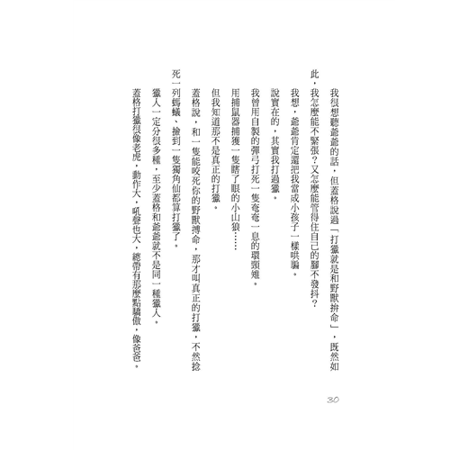 這本書不會缺乏樂趣,「我」、蓋格與祖父在對抗濫捕的漢人過程中,便是趣味叢生。