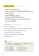 本書前半部的例句很多,漸漸地自己就可以開始一邊看範例一邊提筆練習,內容非常充實卻很簡單,讓每個學習階段都不會因為感到痛苦而輕易放棄。英文程度不太好的人也可以立刻上手,一開始只要寫一句就行了,而且自己想寫什麼就寫什麼,不知不覺中就可以累積出連續寫下五句英文的實力。
