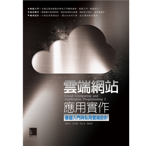雲端運算(Cloud Computing) 之意義,是將原儲存在本地電腦(Local Machine) 的資料(Information),交由雲端網站(Cloud Site) 儲存;原由本地電腦之運算,交由雲端網站運算。本系列書有兩冊,內容豐富,範例導引,具高度實用性。