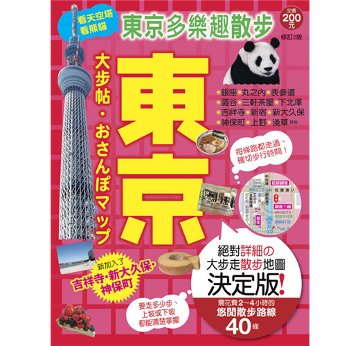 最新加入了獲〝最想居住的都市第一名〞榮銜的吉祥寺;第一大韓國城新大久保;迷人書卷氣息的神保町。另外特別企劃上野的熊貓單元,東京站一番街的拉麵街,以及最夯的東京天空樹特集,都是一併將相關資訊做完整的整理,方便你享受地方美食、也能採購最道地的伴手禮!