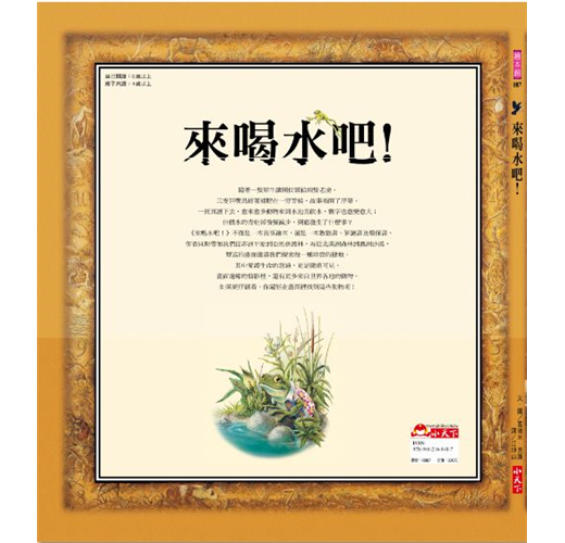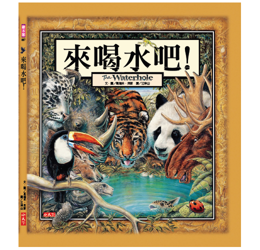 《來喝水吧!》不僅是一本故事繪本,還是一本數數書、解謎書及環保書。作者貝斯帶領我們從非洲平原到亞馬孫叢林,再從北美洲森林到澳洲沙漠,豐富的畫面邀請我們探索每一種珍貴的棲地,其中愛護生命的意涵,更是隨處可見。畫面邊緣的翦影裡,還有更多來自世界各地的動物。如果更仔細看,你還能在畫面裡找到這些動物呢!