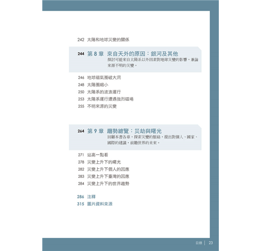 回顧本書各章,探索災變的脈絡,提出對個人、國家、國際的建議,前瞻世界的未來。