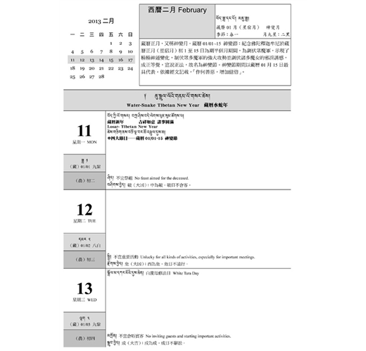 本手冊採西曆、農曆、藏曆日期對照,並收錄各節氣、國定節日、紀念日、藏傳佛教各大宗派祖師紀念日、各當代偉大上師生日誕辰……