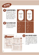 每天一開始先瞭解當天(週)的學習要點,並根據28天學習日程表,每完成一天(週)的學習,就表示你的英文能力比昨天更進步,只要按表操課,每天一小時,連續28天,保證奠定英文基礎,英文能力馬上大躍進。