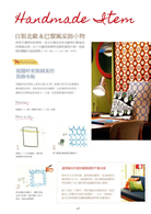 這回的主題旅行,更要北中南實地走一回,挖掘出潛藏在日常風景下的手感好店,尋找生活裡日日可用的雜貨良品;而手作單元更是邀請了喜愛手作的達人創意家們,提供各種有趣的平價改造點子,希望藉由這些豐富的內容,溫暖讀者愜意舒適的冬日居家生活。