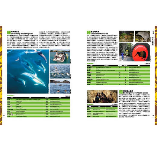 當然,也不一定非得如此刺激才能領略紐西蘭之美,紐西蘭也有許多適合闔家同遊的行程,像是搭乘遊船出海賞鯨、在壯麗的米佛峽灣巡航、隨著熱氣噴吐冉冉升空等。而到毛利村落觀賞Haka戰舞、在夜幕中尋找可愛的奇異鳥、乘著小船划進燦麗的螢火蟲洞、去農場學習剪羊毛的技巧、在北島的地熱旁泡溫泉,在南島的冰河上漫步,這些都是來到紐西蘭一定要做的事。為了不讓讀者錯過經典行程,本書特別將所有行程資訊蒐集整理,方便讀者根據自己的路線、興趣、時間、預算……還有膽量,來量身打造個人專屬的紐西蘭之旅。此外,本書也完整介紹各種在紐西蘭的交通方式,包括巡遊巴士、長途客運、租車自駕、景觀鐵路等,使旅程的安排更加靈活豐富。希望大家能因為這本書而在紐西蘭玩得盡興,並留下一段精彩的冒險回憶。