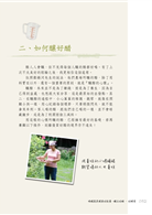 最後我想感謝一些人。首先要謝謝農場主人鄭錫河先生以及他的妻子秀玉姐、女兒育清在這段時間裡的配合與付出,還有太平區農會的盧瑾源先生、黃竹國小的許彩梁老師、東平國小的李戊益老師,共同修正酒桶山風景區的部份內容,感謝侯水河先生提供小桂林的照片,讓本書更有可看性;而在寫作過程中無條件幫忙示範的穗盆姐、淑蘭、于媽,妳們都是我心中最棒的前輩。