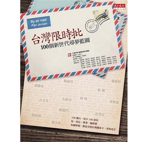 這本書,是中國時報及一百位新世代寫給台灣的限時批;也是今年新總統誕生後,第一封寄往總統府的新世代願景限時批。