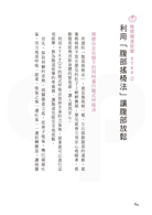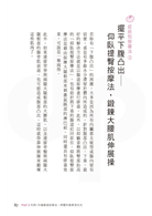 ■10日腸道按摩計劃:分別於傍晚和睡前進行腸道按摩;對於如胃弱、肝腫、腹瀉等特殊狀況,也有介紹加強的按摩法。