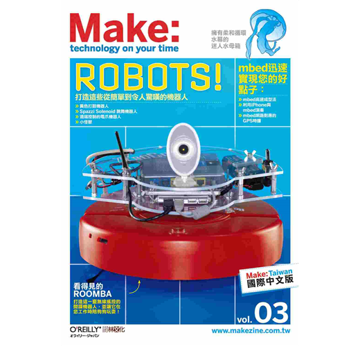 《Make》是一本協助讀者將「自己動手做」DIY的概念,運用到生活中所有科技領域的雜誌書,內容涵蓋範圍包括:汽車、玩具、電子、機器、樂器、攝影、木工家具與戶外活動等產品的製作。此外,每本《Make》都有著令人興奮且多樣化的專題,讓您隨時隨地都能發揮創意充分活用各種科技,盡情享受改造、破解與重組科技的成就感。