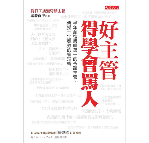 本書作者齋藤直美,大學畢業到卡拉OK連鎖店打工,四年之內升任店經理、管理30位員工。上任半年,業績就打破公司史上最高紀錄。這樣的奇蹟,公司調升她到人才培育部門,總計培訓、指導八千名多人。