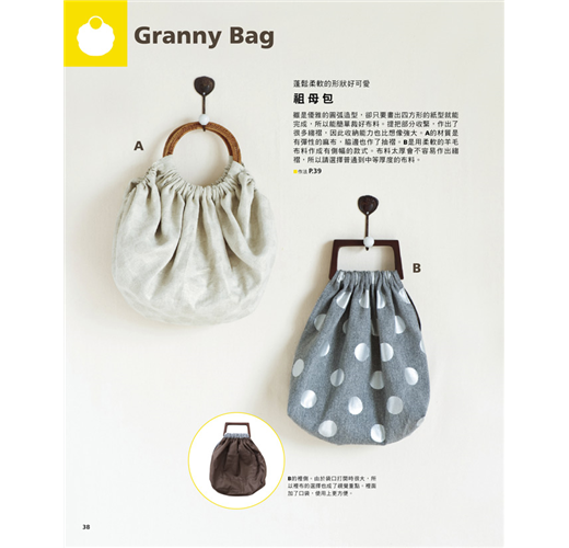 通學包、便當袋、鞋子收納袋、簡約提袋、環保購物袋、托特包、祖母包、馬歇爾包、口金包、後背包、三角袋提包、彈簧口金包、郵差包、橢圓底托特包、大提包、筒狀波士頓包,你現在需要哪一個呢?這16種基本版型可作出各種尺寸與特色,不論是上學用還是上班用,要大採購還是只帶隨身小物,喜歡大型包還是小型包,都能在書中找到適合自己的包款。