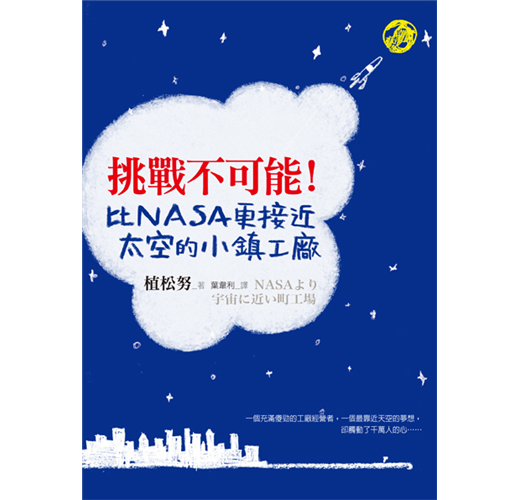 作者植松 努在北海道的赤平小鎮經營僅二十人的工廠,當工廠多次面臨倒閉危機,他憑藉獨一無二的工作哲學一次次開創新局。正值中年危機的年紀,他不在小酒館裡怨天尤人,而是捧著厚厚的企劃書去貸款,展開夢想的第一步──不惜負債持續投資小型火箭,從事太空開發的計畫。