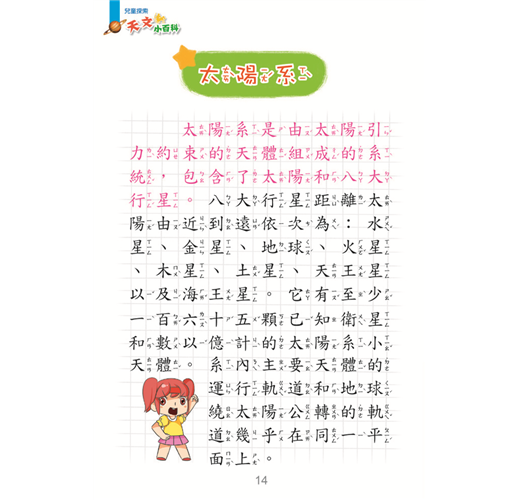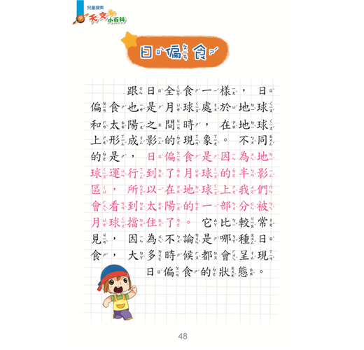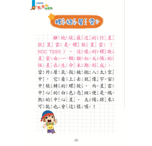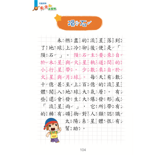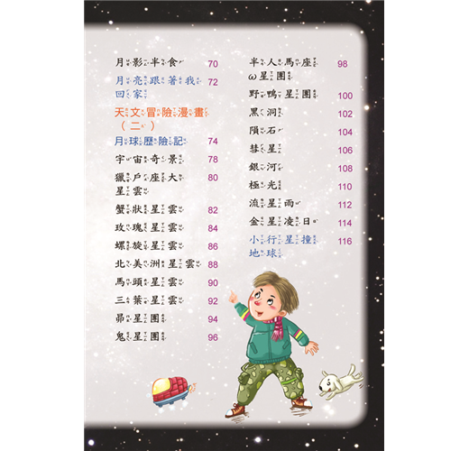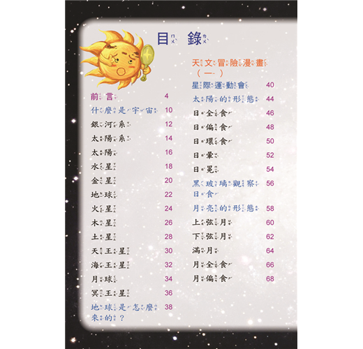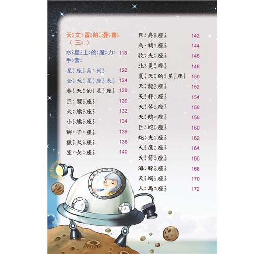震撼視覺及飽滿知識的全方位百科教育由「臺北市立天文科學教育館館長 邱國光」審定 奇妙的宇宙多神祕,你也想去探索嗎?走進滿天星星的太空世界吧!