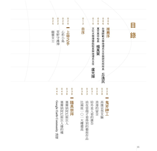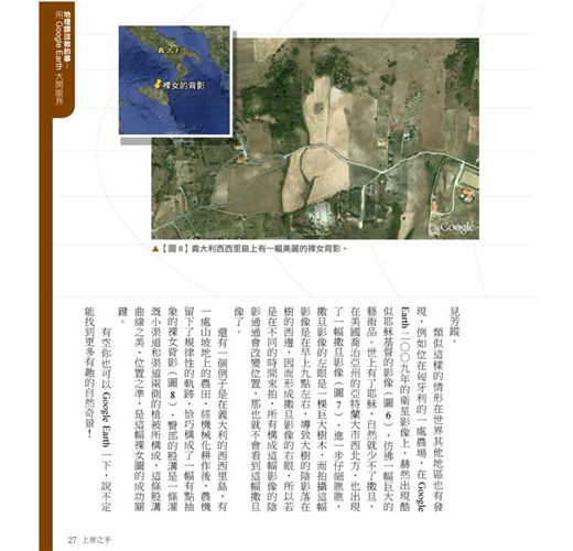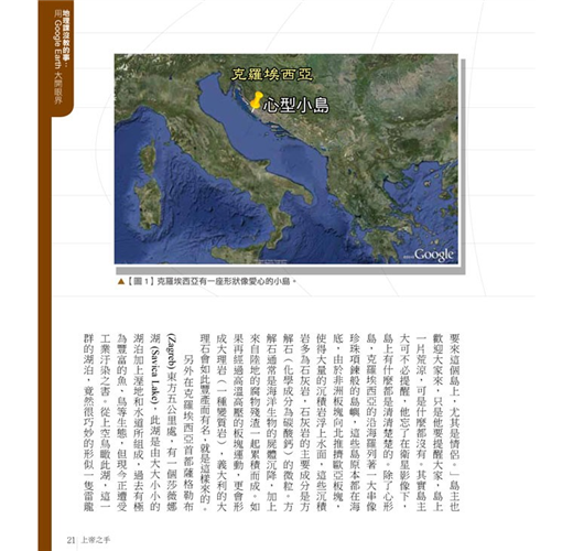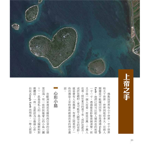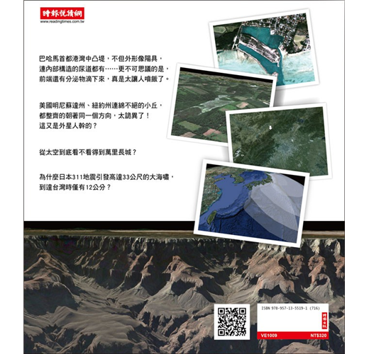 Google Earth讓人的視野不再局限在平面,而能站在雲端上重新認識許多「意想不到」的地形地貌,讓讀者在虛擬世界中,閱讀有趣的故事,獲得嚴謹的知識,更能有一個嶄新的世界觀!