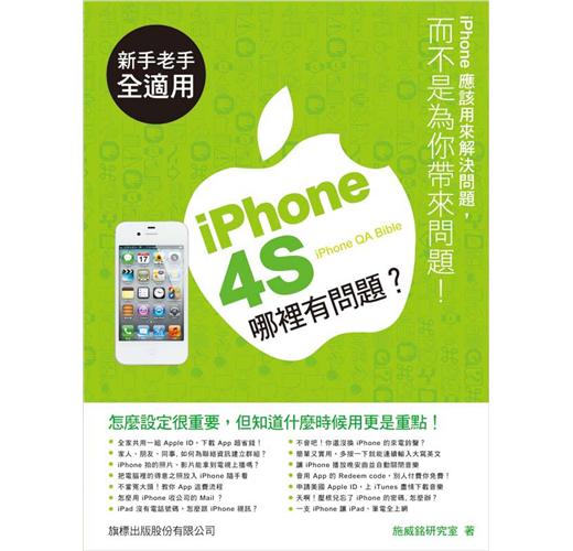 你可能才跟上這股旋風買了新 iPhone4S, 一定有不知道 iPhone 能否做到的疑問, 例如 iPhone 能收公司的 mail 嗎?畫面能轉接到電視上播嗎?能把電腦的照片放入 iPhone 嗎?...也可能你早就慧眼識英雄, 用 iPhone 一段時間了, 而在使用的過程中仍難免有不知道該怎麼設定的困擾, 例如怎麼為聯絡資訊建立群組?如何讓照片依日期顯示?買錯了 App 要怎麼退費?...