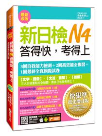 一本好書能讓讀者在短時間內達到最佳成效,本書統合整理出新日檢N4所有必出的文法,針對每個文法項目一一詳細解說,附上日常生活中常出現、再實用不過的生活例句,輔助讀者學習、記憶,透過朗讀MP3日籍老師標準的日語,邊聽邊對照書本,有助於日文聽力的提升,文法、單字也一個個一字不漏、紮實地記下來,跟著唸還可增強口語會話能力,可說是一舉數得。並於最後一單元附上「模擬試題」與「完全解析」,供讀者自我檢測、評量,釐清文法觀念,增加考試戰鬥力,在新日檢考試中一舉奪得好成績。