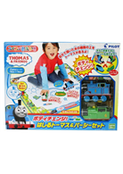 ★新款內有「湯瑪士」與「培西」兩台火車 (培西是湯瑪士影集中主角之ㄧ的郵務火車) :一台是滾輪火車,裝水後在塗鴉毯上推動畫出軌道,讓另一台電動火車自動感應水軌道,追著前面的火車奔馳著。
