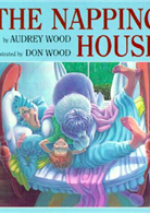 Everyone knows the cumulative rhyme “This Is the House That Jack Built,” but The Napping House (1984) is close on its heels in the race for posterity: “And on that granny / there is a child / a dreaming child / on a snoring granny / on a cozy bed / in a napping house, / where everyone is sleeping.” Included in the napping house menagerie is a dozing dog, a snoozing cat, a slumbering mouse, and a wakeful flea who ends up toppling the whole sleep heap with one chomp! Don Wood’s delightfully detailed comical illustrations are bathed in moonlight blues until the sun comes up, then all is color and rainbows and a very awake household.