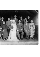 民國50年代,台北中山堂光復廳的婚宴,兩家人拍攝了漂亮的合影照片。光復廳是著名的婚宴餐廳,許多台北名人的婚禮都在這裡舉行。有意在這裡舉辦婚禮的家庭,需要排隊登記,或者透過特殊的關係,才能訂到席位。以致於在中山堂光復廳舉辦婚禮,被當成很時髦、很體面的事情。