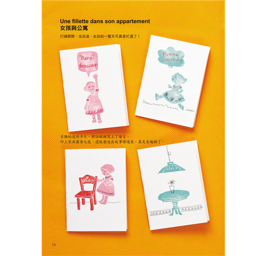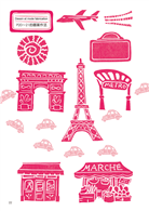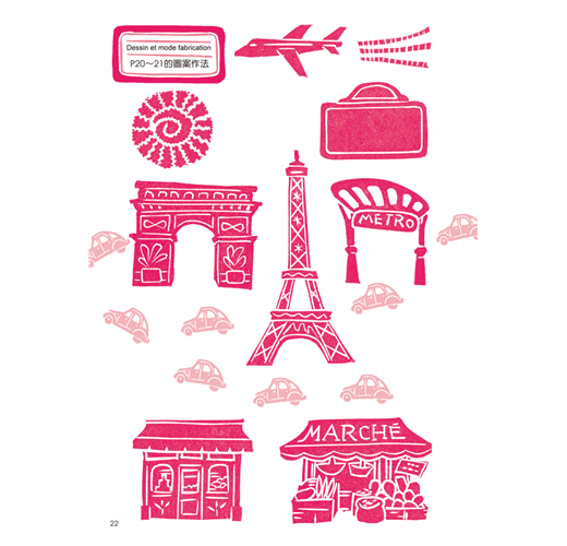 全書以法國作為背景,並分門別類的介紹各種景色和圖樣,包括知名建築物、街道上的人事物、法式廚房餐具、主題特色店家、四季水果、法國風紋樣及花邊造型等,並實際將圖案結合在生活上,讓隨身物品還有家中周圍都能充滿浪漫的法國風情。