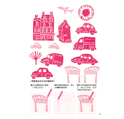 刻越多越好玩,組合搭配不同色彩的印台來蓋章,將能形成立體的感覺,塑造出一個個美妙的圖畫。
