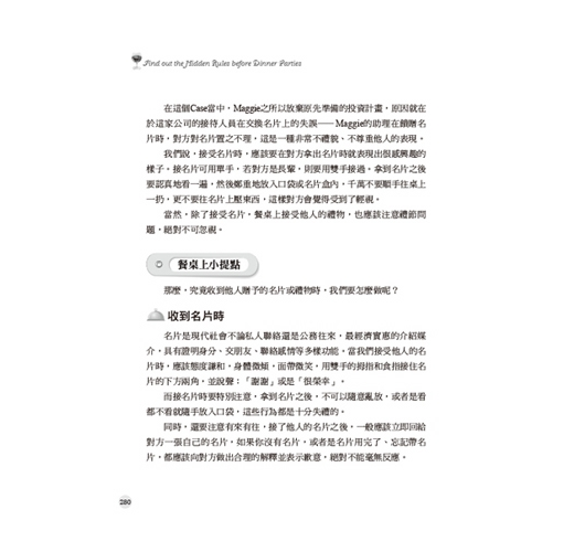 在這個Case裡,是什麼吸引力使得這位經理的昔日大學同窗願意接受邀請?就是一場與宮廷故事有關的飯局,因為這些宮廷菜擁有特別的文化意義。可見,若我們想成功邀請他人出席飯局,這樣的「好奇心」也可以是我們「利誘」的一個好方法。