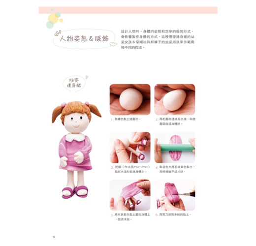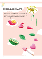 本書一次闡明市售黏土特性,從黏土的選擇、工具使用、調色和上色方式開始教起,透過從圓形延伸出的八大基礎造型:圓形、橢圓形、水滴、蛋形、長水滴、橄欖形、保齡球形、長條形,只要學會這八種形狀,就能進入百變的黏土世界中,簡易的手法和詳細的圖解,讓你也能從單純的形狀跟著步驟捏出可愛的造型。