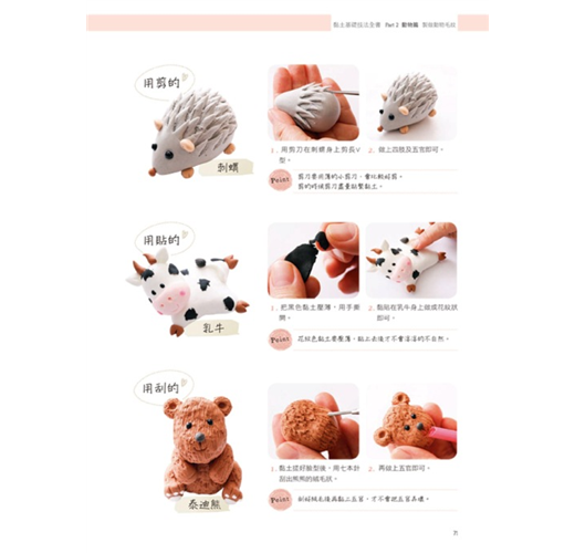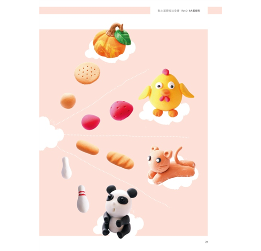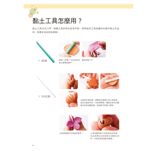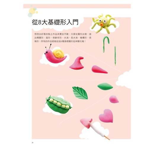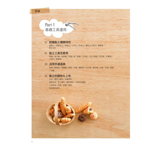 3. 囊括黏土最受歡迎的人物、動物、花草、仿真食物、迷你食玩、編籃的入門指導。